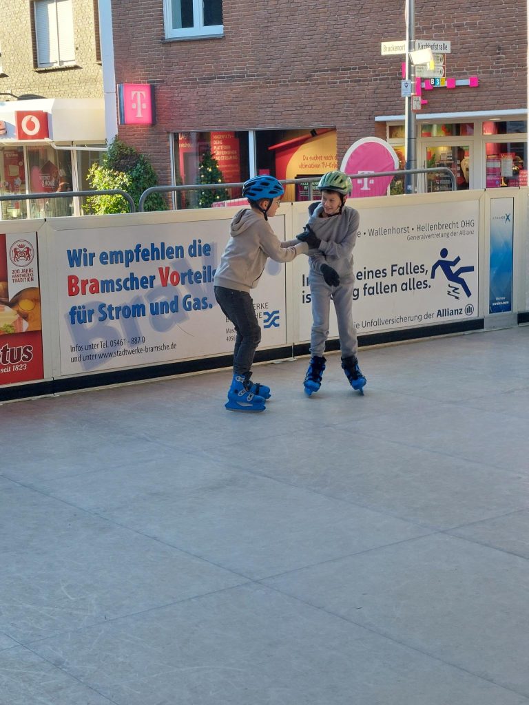 Im Dezember wurde in vielen Klassen die Sportstunde nach draußen auf die Bramscher Eisbahn verlegt. Möglicherweise hat hier auch der Nikolaus etwas zu beigetragen… Die Kinder hatten viel Spaß dabei!
