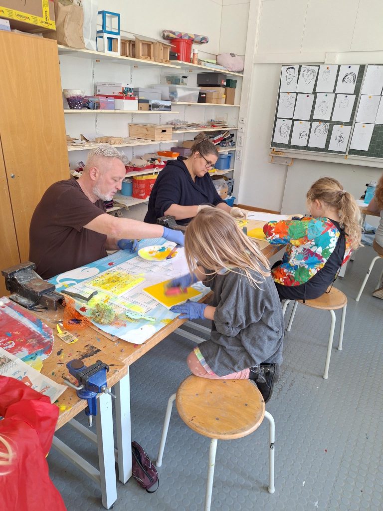 Zu Beginn der Kreativzeit durften alle Beteiligten ihr Gesicht erfühlen und haben es zunächst mit Bleistift und anschließend mit Kohle blind gezeichnet. Es kamen wunderliche, sehr coole Selbstportraits dabei heraus!