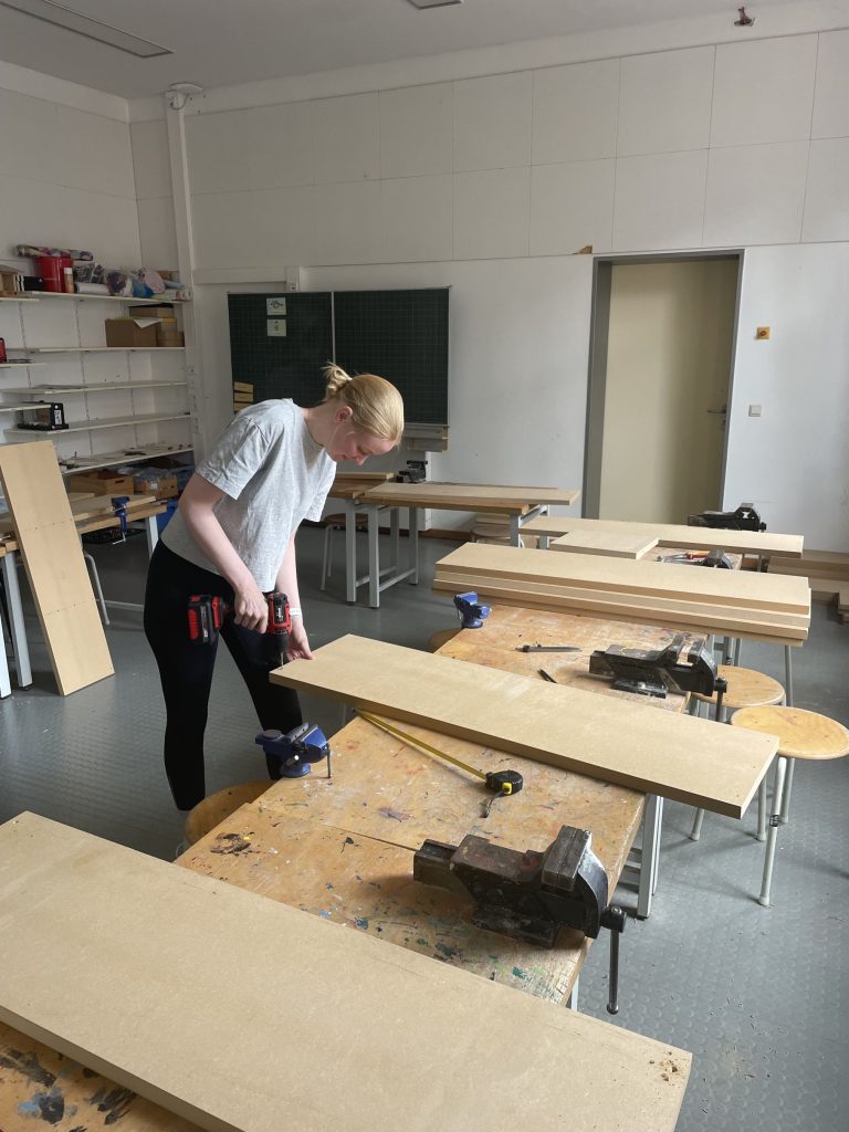 Vor den Ferien kam die erste Bänkelieferung an. Diese wurden zu Beginn der Ferien fertig zusammengebaut und gestrichen, sodass der Sitzkreis zu Beginn des neuen Schuljahres eingesetzt werden kann. Die restlichen bestellten Bänke werden ebenfalls zeitnah erwartet, damit dann alle Klassen mit Bänken ausgestattet sind.